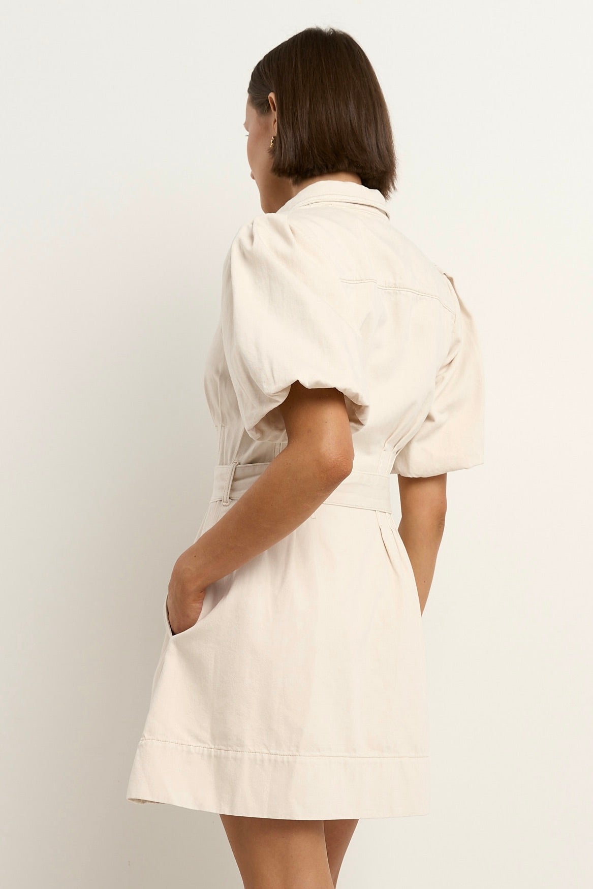 Timeless elegance meets effortless style with the Sundown Dress. Designed with a modern silhouette, this versatile mini dress features bold puff sleeves, contrast stitching, and a waist-cinching tie for a flattering fit. The structured yet lightweight fabric makes it perfect for any occasion, whether you're dressing up for a night out or keeping it casual with sneakers.