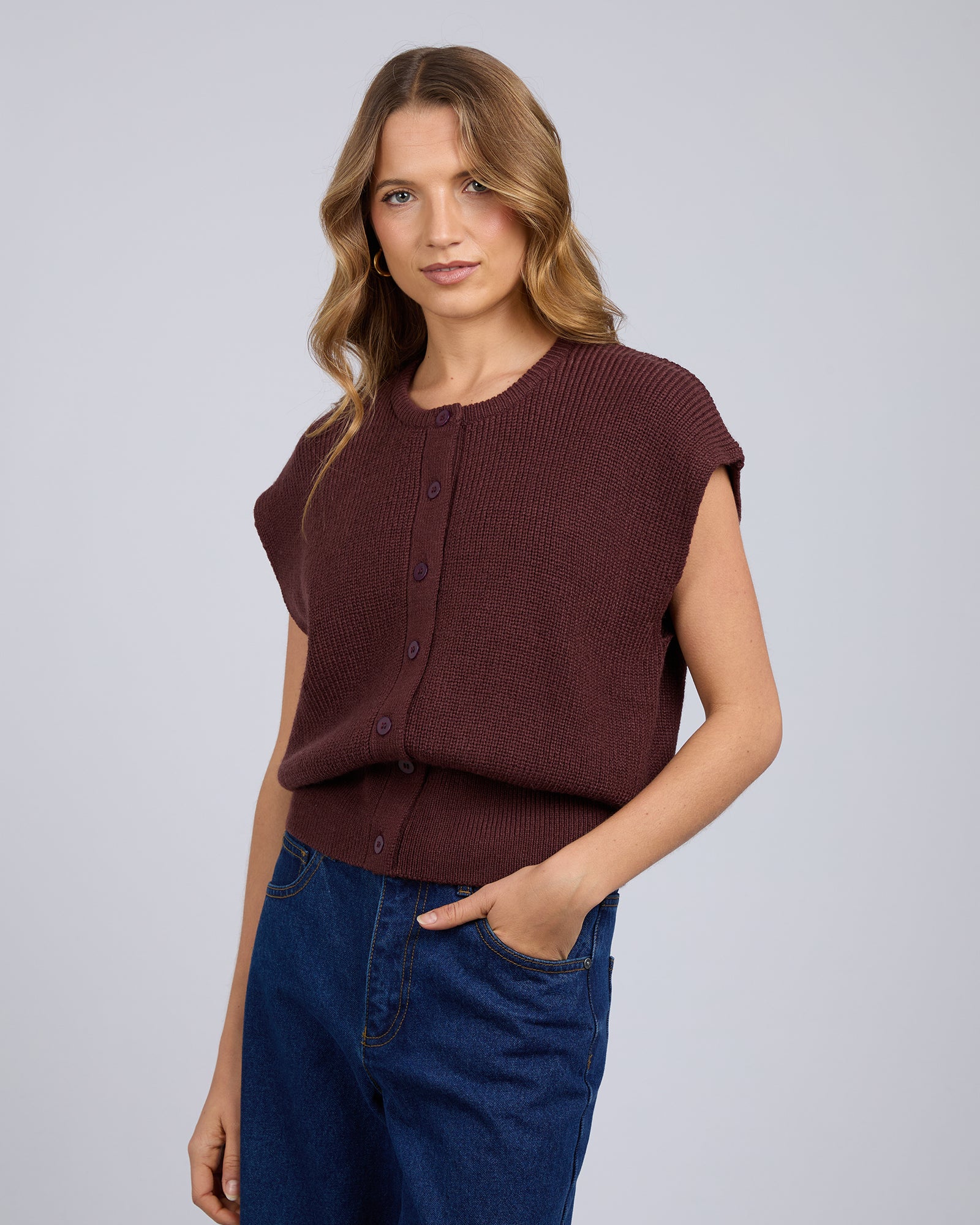Introducing the Elara Vest Top from Silent Theory. This knitted button‑front piece brings cosy, contemporary texture to your wardrobe.