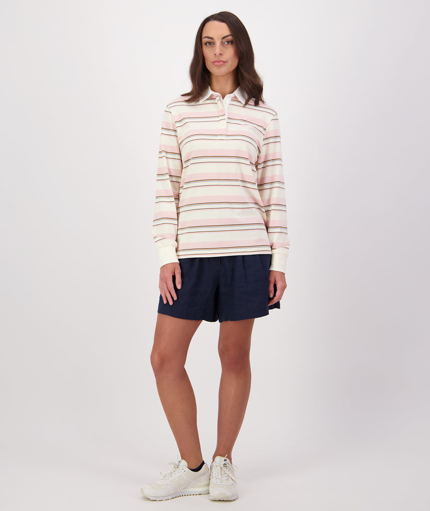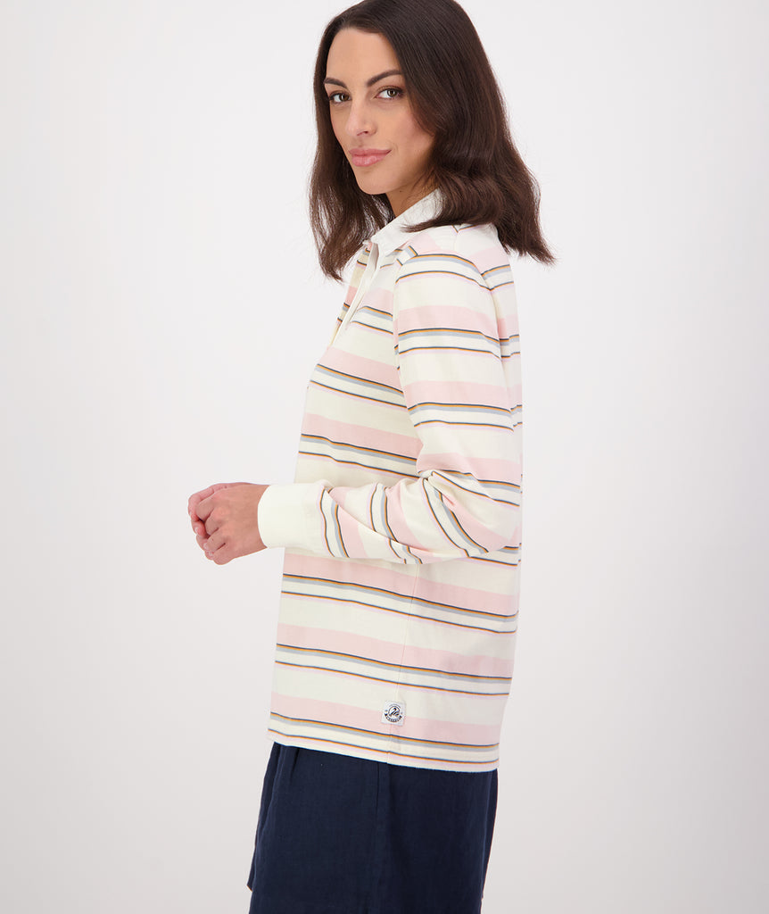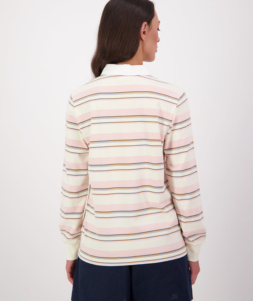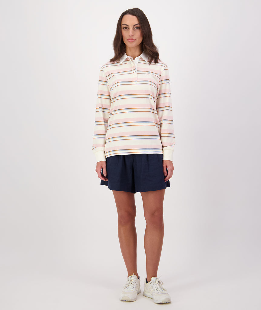 Introducing the Massey Stripe Rugby from Swanndri. This stylish top combines comfort and a classic rugby aesthetic for a versatile addition to your wardrobe.