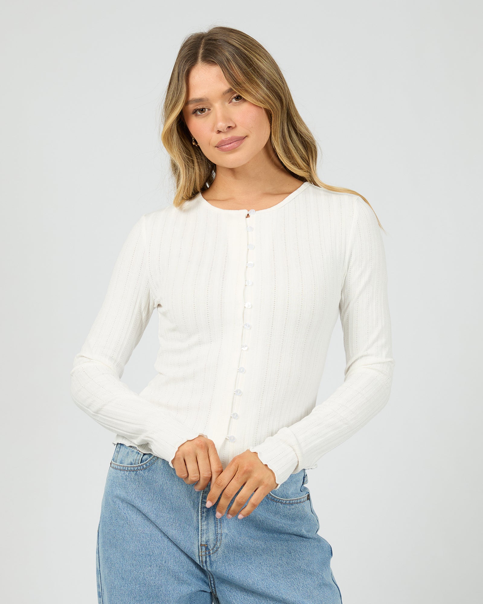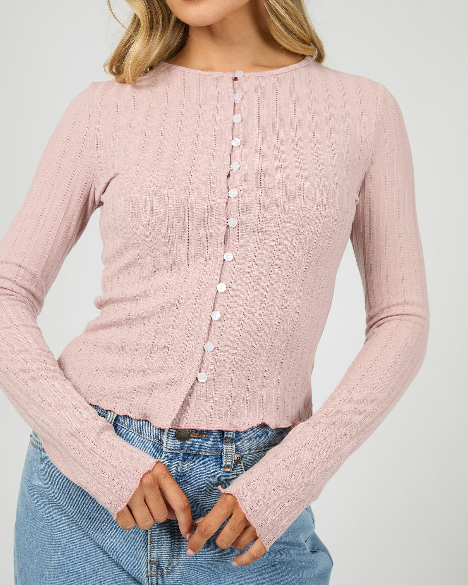 Introducing the Tarni Knit Top from All About Eve. This refined blush pink piece adds a delicate, elevated touch to everyday looks.