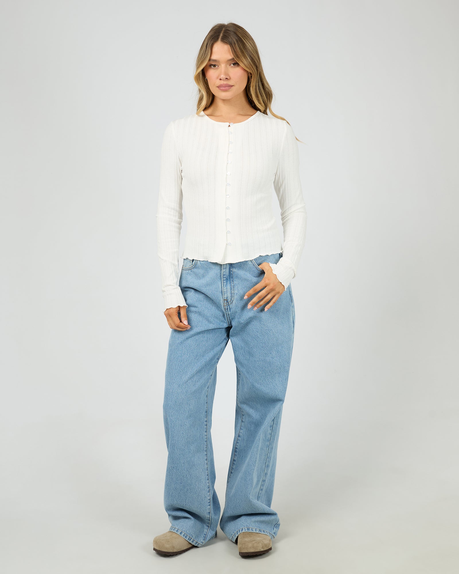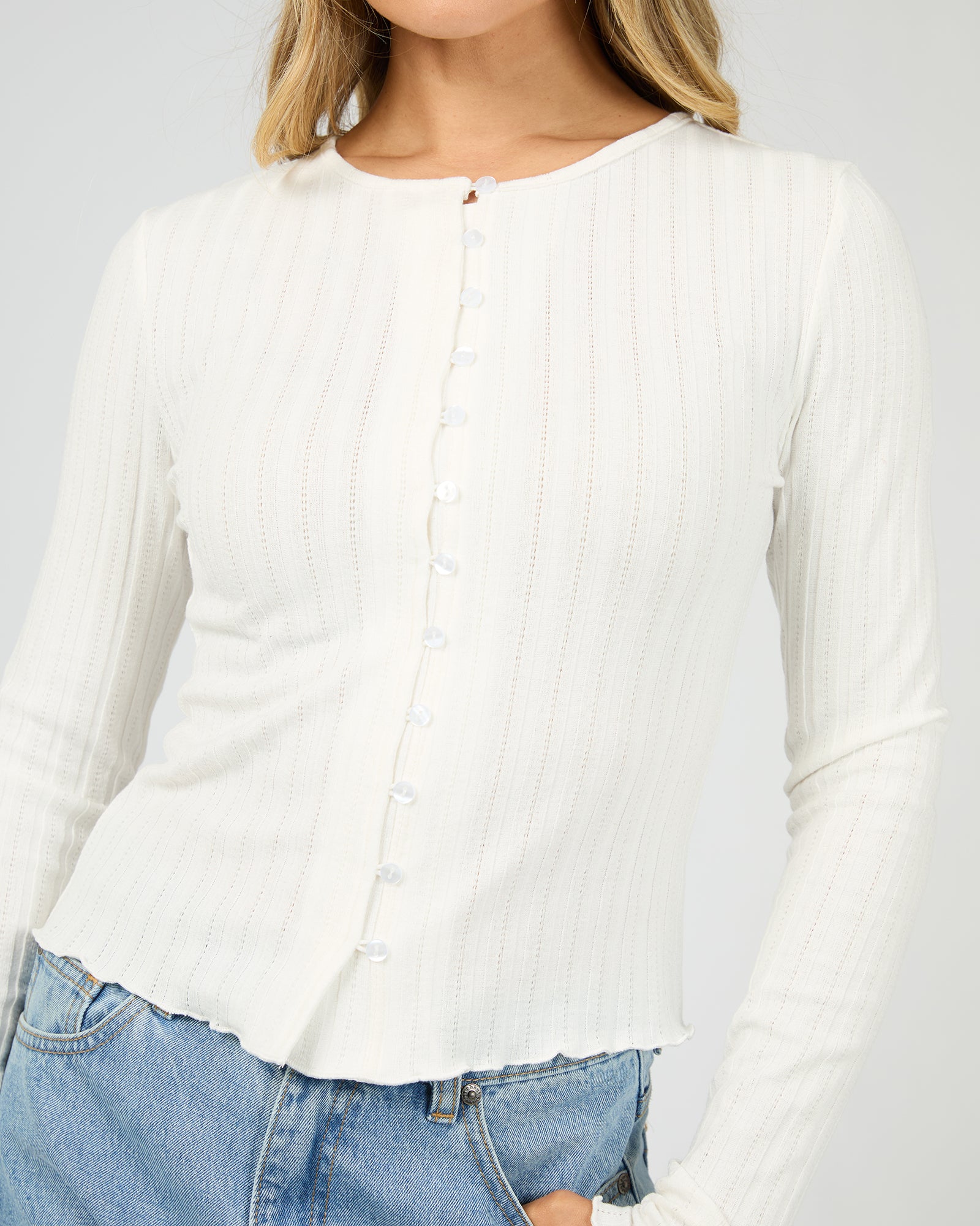 - Centre-front pearl-effect button fastening and subtle ribbed texture for refined detail