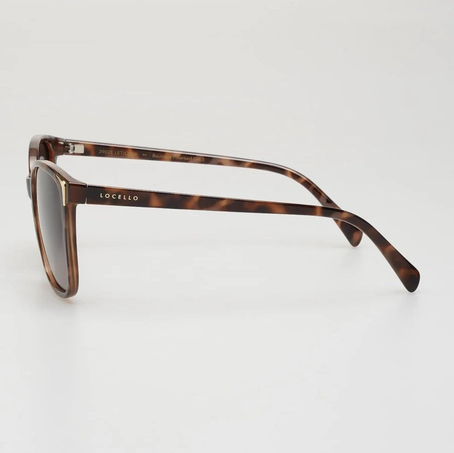Step out in style with Leticia sunglasses, the perfect accessory to elevate your look. Combining classic and contemporary elements with a playful twist, these rectangular glasses are the epitome of sophistication. The attention to detail is evident in the gold accents that give the shades a modern twist, adding a distinctive touch to the timeless tortoiseshell frame. While Leticia sunglasses are stylish, they also provide essential protection for your eyes with their gradient brown lenses, which block harmful UV rays. Embrace the spirit of Leticia’s charm and step out into the world in style.